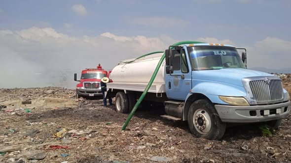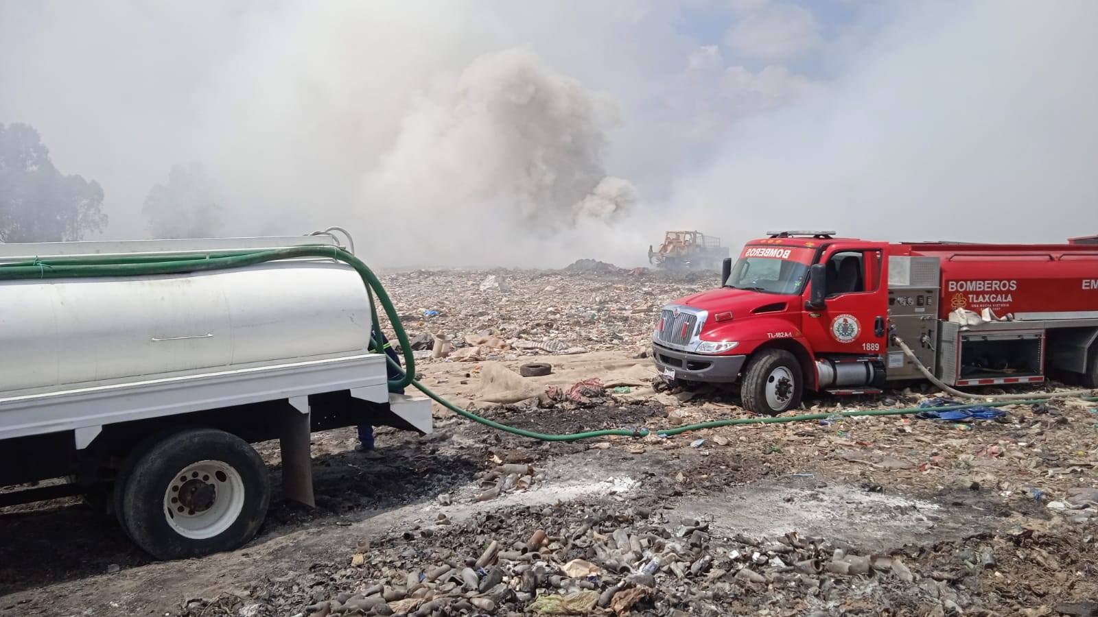 El Gobierno Municipal de Yauhquemehcan, encabezado por el presidente municipal David Vega Terrazas, informó que la Dirección de Agua Potable y Alcantarillado se encuentra brindando apoyo en las labores para atender el incendio registrado en el relleno sanitario del municipio de Nanacamilpa.